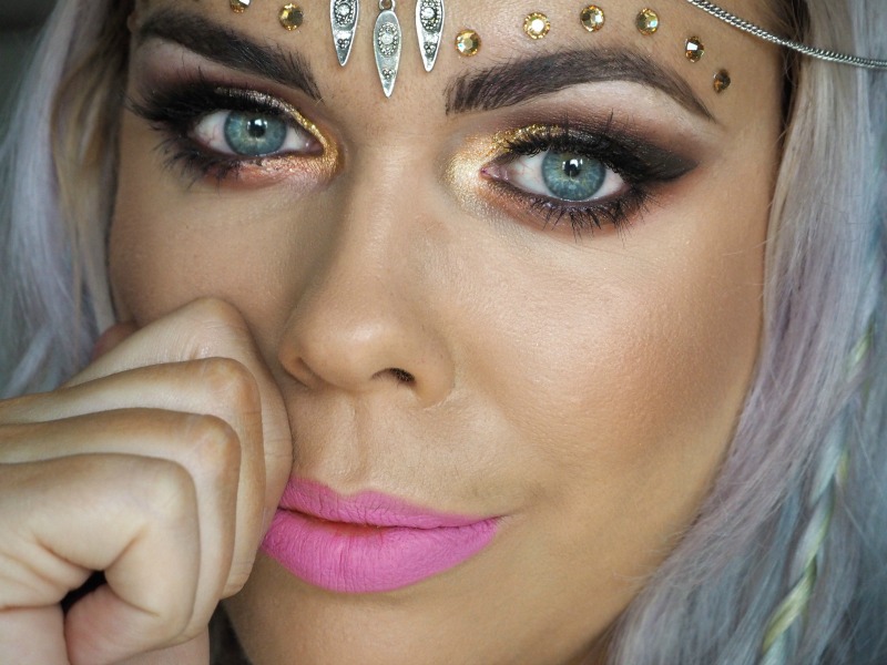 LIPS : With a warm golden eye, you can pretty much get away with ANY lip colour that takes your fancy. Here I have teamed it with a bright pink from Makeup Atelier Paris, and then I also tried it with a softer nude/coral which is the new Urban Decay VICE lipstick in ‘Unicorn’. I think I prefer a softer lip with such a strong eye, but it’s just personal preference.