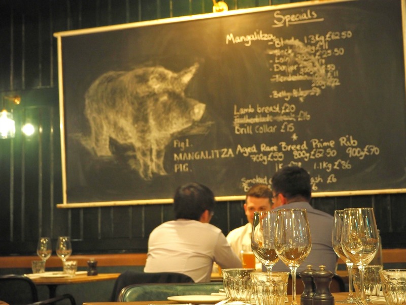 Have you been to the Hawksmoor? It has a similar vibe to that with the cuts and weight of meat being scribbled onto the chalk boards dotted around the restaurant, and once they have been ordered….they are gone. We arrived early, around 630pm, and by the time we had finished around 830pm there was no more meat left on the daily boards.
