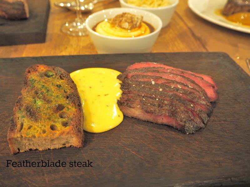 We shared snacks & starters : Pickled Garden veg, House Wurst, Blood Cake & Pigs Head Scrumpet. All great, although I remember the pickled veg was a little lacklustre in the variety. The wurst & scrumpet were the stand-outs for sure, and after just these dishes we were already feeling the meat struggs. For main I had the Featherblade Steak off the board, which came served with a chunk of the most amazing garlic-type bread I have ever had, plus I had (should not have had) a side of the mushroom & bone marrow mash. It was absolutely delicious , but due to the over-ordering of the starters I could no way eat it all or savour it how I had wanted. NEXT TIME ONE SNACK & ONE MAIN.