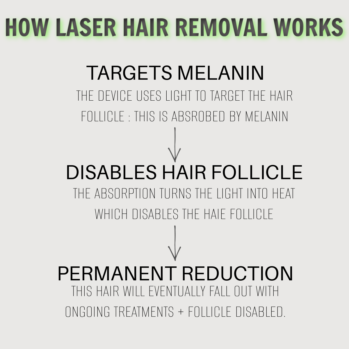 Because the laser targets the melanin (pigment) in your hair follicles, this means that it needs clear differentiation between the colour of the hair and the colour of the skin around it to work safely and effectively and not damage the skin by thinking it is hair.